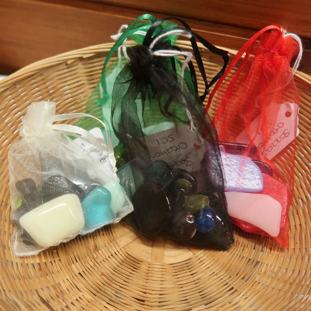 Elevate your crafting projects with a stunning organza bag of glass nuggets from Sazza's Creations! Each bag is handcrafted by Sarah herself and sent out at random, ensuring a unique surprise every time. These high-quality glass nuggets are perfect for adding a touch of elegance your to home decor. Treat yourself to a beautiful assortment of glass nuggets and let your imagination run wild!