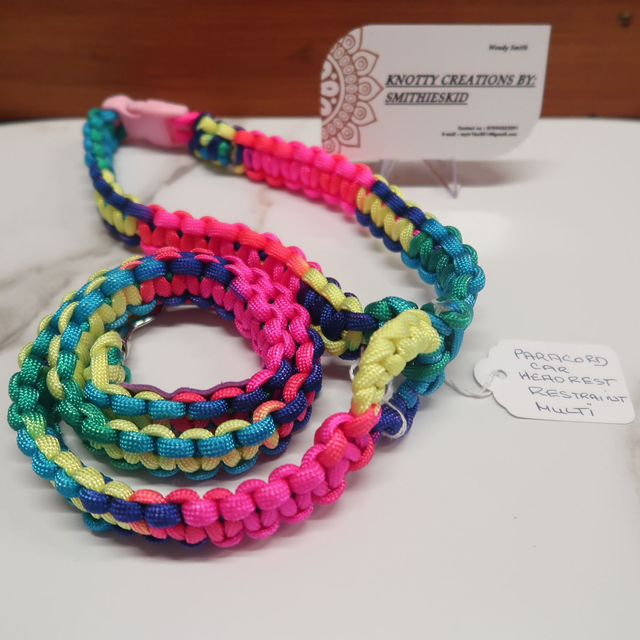 Keep your furry friends safe during car rides with the Pet Paracord Car Headrest Restraint handcrafted by Wendy from Knotty Creations by Smithieskid. This innovative restraint secures your pets to the headrest of a car seat, providing a safe and comfortable travel experience. Made from durable paracord, this restraint is perfect for ensuring your pets stay in place while on the road. Say goodbye to distractions and worry about your pets moving around in the car. Invest in the Pet Paracord Car Headrest Restraint for peace of mind and a stress-free journey with your beloved pets.