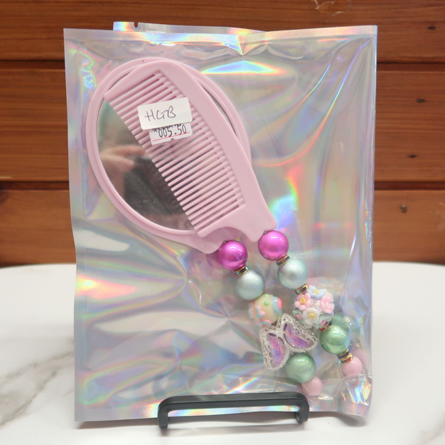Elevate your beauty routine with this stunning beaded comb and mirror set, handcrafted by Katharine from Heavenly Books & Gifts. Available in 2 charming shades of pink, this set is perfect for adding a touch of elegance to your daily styling. The beaded details on the comb and mirror create a luxurious feel, while the compact size makes it ideal for on-the-go touch-ups. Choose from our selection of pink hues to match your personal style and make a statement wherever you go. Make this beaded comb and mirror set your go-to accessory for a touch of glamour in your daily routine.
