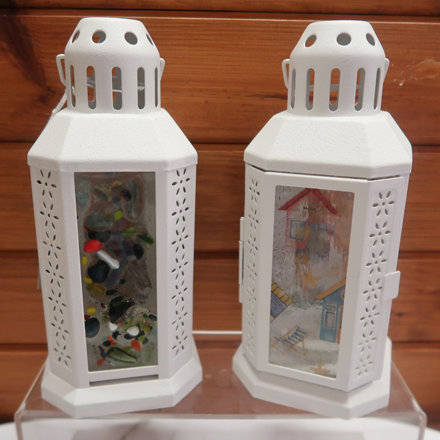 Shop Sarah's stunning fused glass lanterns at Sazza's Creations. Choose from 3 unique designs to elevate your home decor, garden, or table centerpieces. Handcrafted with care, these lanterns make the perfect gift for any occasion. Add a touch of elegance and charm to any space with these exquisite pieces. Illuminate your surroundings with these beautifully crafted lanterns that are sure to be a conversation starter in any setting. Bring warmth and style into your space with Sarah's fused glass lanterns.