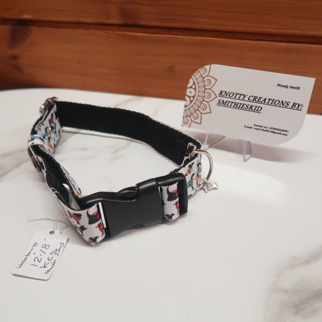Discover the perfect blend of style and functionality with these webbing and grosgrain ribbon adjustable dog collar. Handcrafted by Wendy from Knotty Creations by Smithieskid, these collars come in various designs to suit every pup's personality. Durable and easy to adjust for the perfect fit, your furry friend will be comfortable and stylish on every walk. Made with high-quality materials, this collar is a must-have for any pet owner looking to add a touch of flair to their dog's wardrobe. Upgrade your pup's look today with our unique adjustable dog collar!