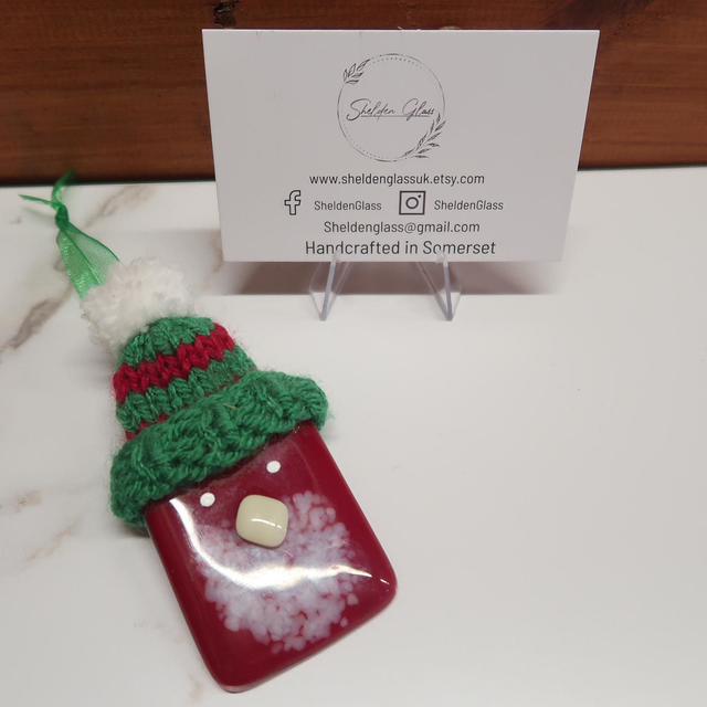 Decorate your home with these charming fused glass Christmas decorations featuring adorable woolly hats. Handcrafted by Michelle from Shelden Glass in Somerset, these unique decorations come in 3 delightful designs to choose from. Perfect as a gift or for adding a festive touch to your home decor, these decorations are sure to bring holiday cheer to any space. Each piece is carefully made with attention to detail, making them a special addition to your Christmas collection. Choose your favorite design and bring some handmade charm to your holiday season.